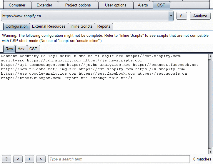 - a CSP configuration generator based on the Burp crawler or using manual browsing