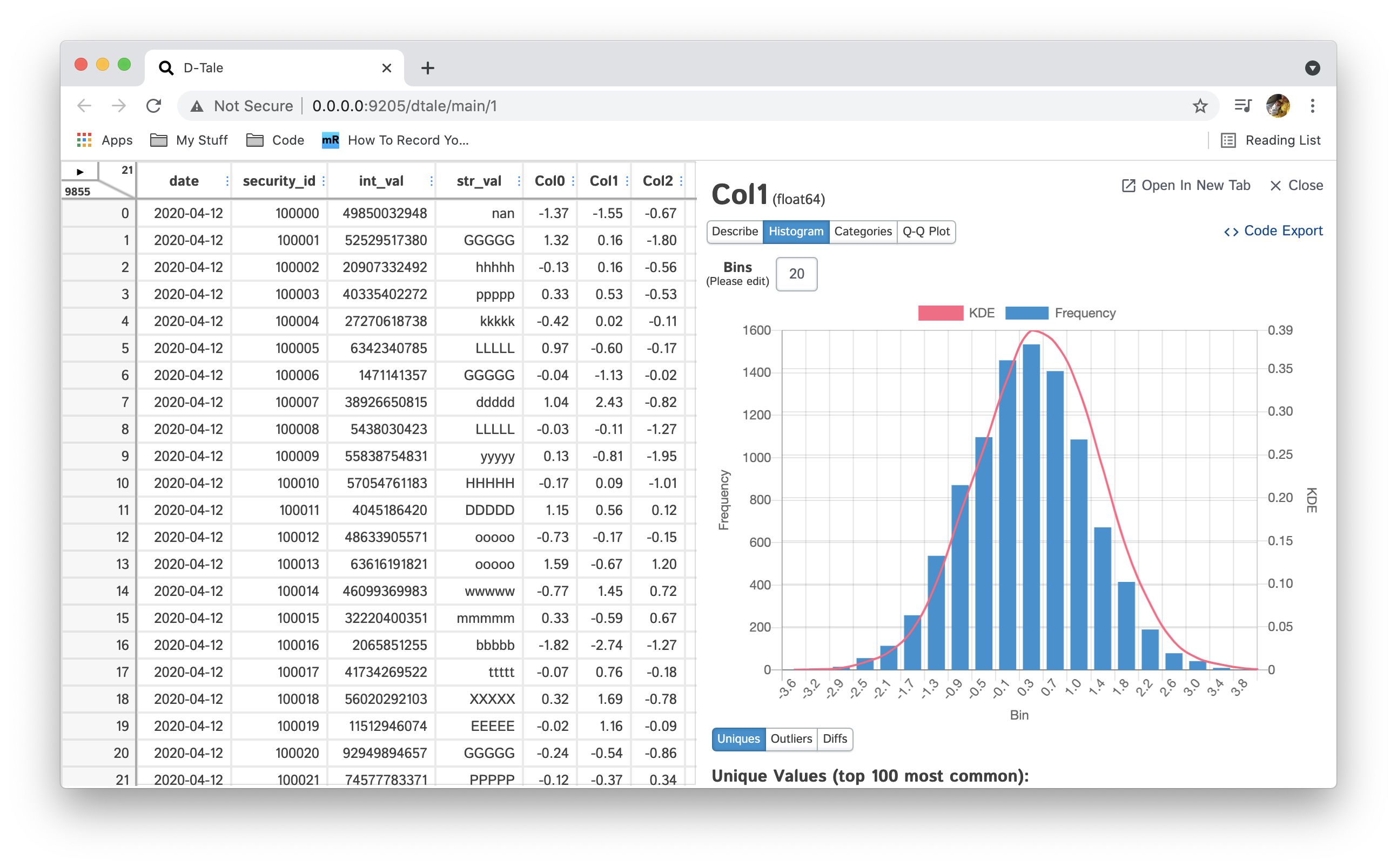 Then view your D-Tale instance in your browser using the link that gets printed